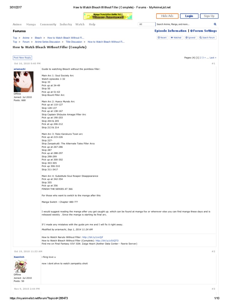 How To Watch Bleach Without Filler Complete Forums Myanimelist Leisure Free 30 Day Trial Scribd