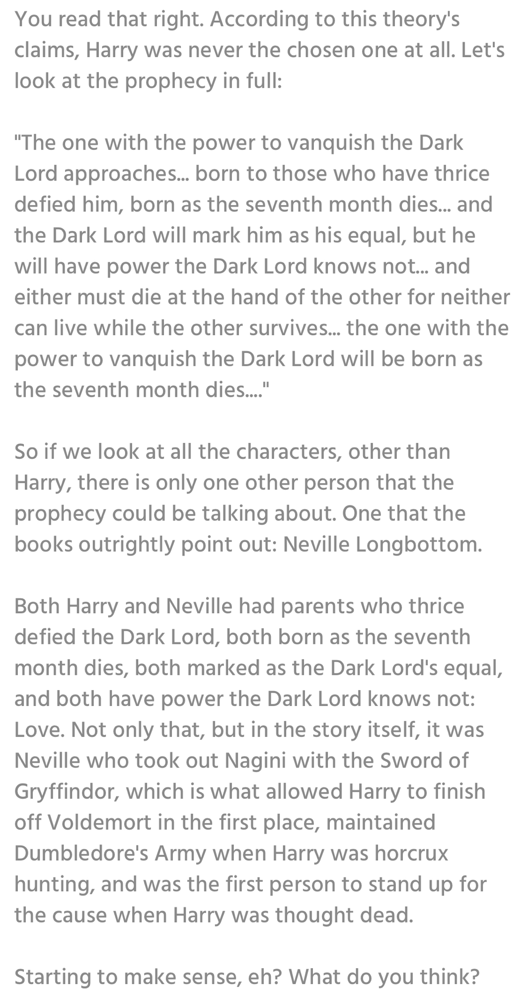 Neville longbottom chosen one theory. Neo isn t the one in. Neville longbottom alternate harry potter theory. Born to those who have thrice defied him born as the seventh.