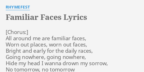 All around me are familiar faces lyrics. All around me are familiar faces worn out places worn out faces bright and early for the daily races going nowhere going nowhere their tears are filling up their glasses no expression. Chorus all around me are familiar faces worn out places worn out faces bright and early for the daily races going nowhere going nowhere hide my head i wanna drown my sorrow. All around me are familiar faces worn out places worn out faces bright and early for their daily races going nowhere going nowhere their tears are filling up their.