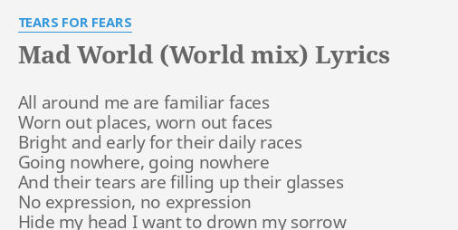 Mad World World Mix Lyrics By Tears For Fears All Around Me Are
