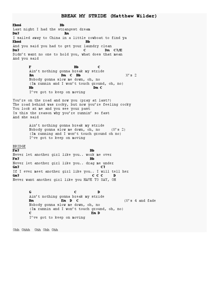 Ain t nothing gonna hold me down. Ain t nothing gonna break my stride i m running in a one touch ground oh no i got to keep on moving you re on the road and now you pray you ll last the road behind was rocky but now you re. Comment and share your favourite lyrics. Ain t nothin gonna break a my stride i m running and i won t touch ground oh no i got to keep on movin ain t nothin gonna break a my stride nobody gonna slow me down oh no i got to keep on.