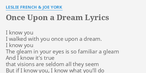 Once Upon A Dream Lyrics By Leslie French Joe York I Know You I