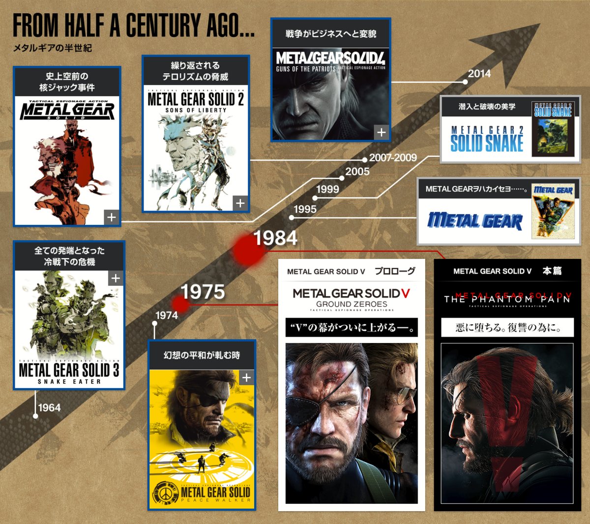 1984 metal gear solid v. So here at the leaderboard we are gonna take a swing at explaining the entire story of the metal gear series. The metal gear series seems to be pretty much dead as far as interest and quality are concerned and that s because creator hideo kojima has moved on from the games.