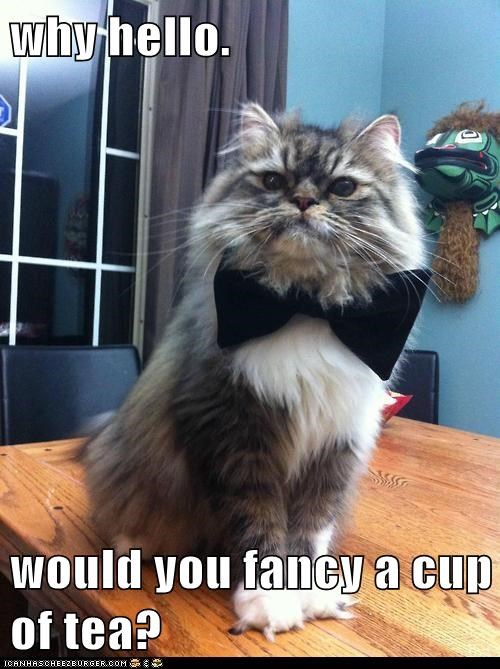 Why Hello Would You Fancy A Cup Of Tea Lolcats Lol Cat
