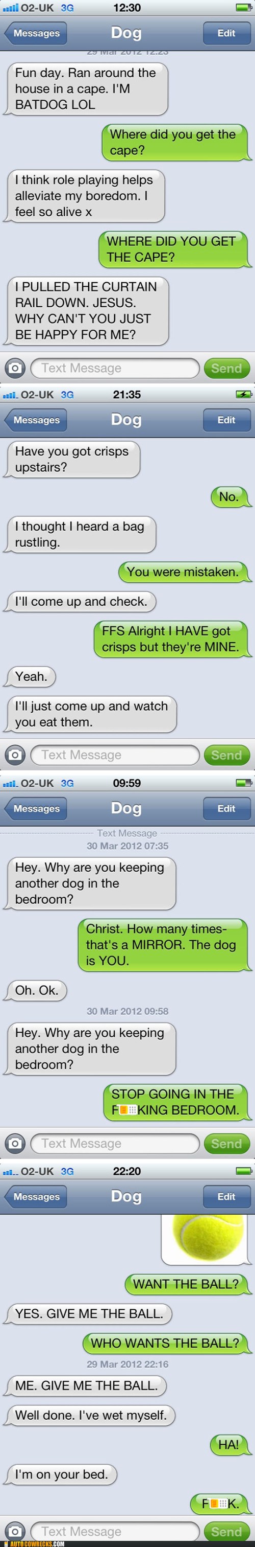 If dogs could text. A never ending chase of dog s life. Check and mate by dog. These texts are hilariously rude but not necessarily appropriate for tiny hoomans.