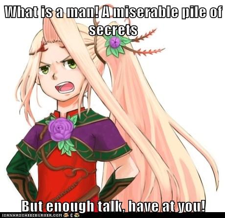 What Is A Man A Miserable Pile Of Secrets But Enough Talk Have At You Cheezburger Funny Memes Funny Pictures