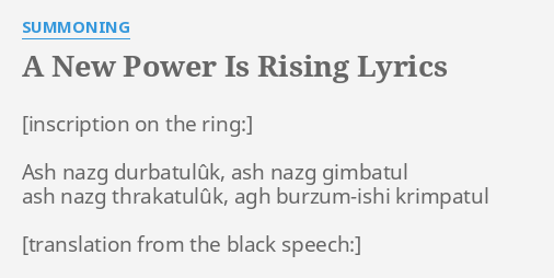 A New Power Is Rising Lyrics By Summoning Ash Nazg Durbatuluk