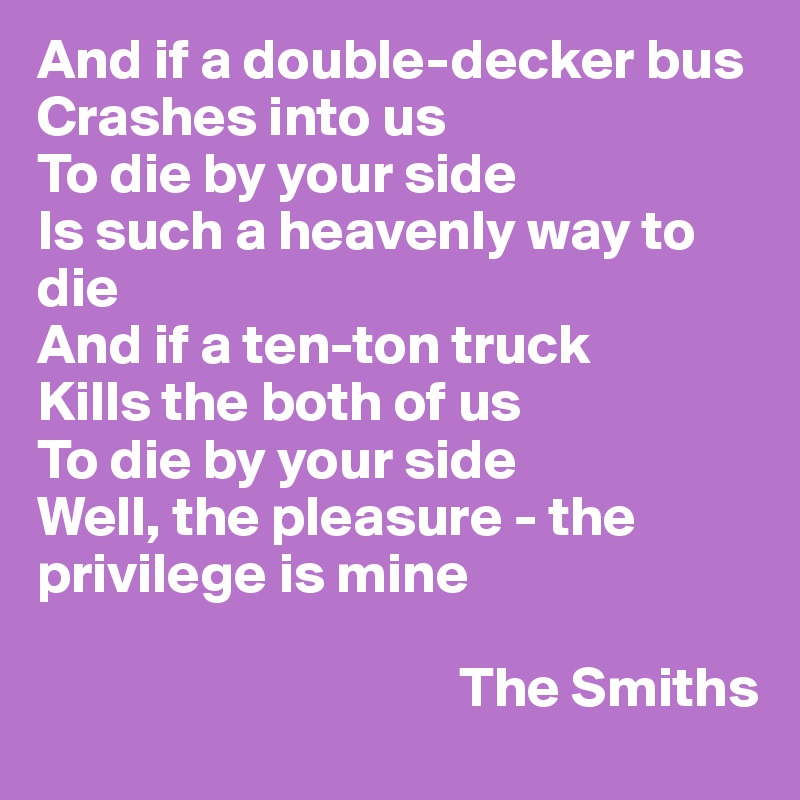 And If A Double Decker Bus Crashes Into Us Any Smiths Fan Out