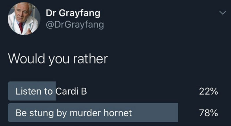 Would You Rather Listen To Cardi B Or Be Stung By A Murder Hornet