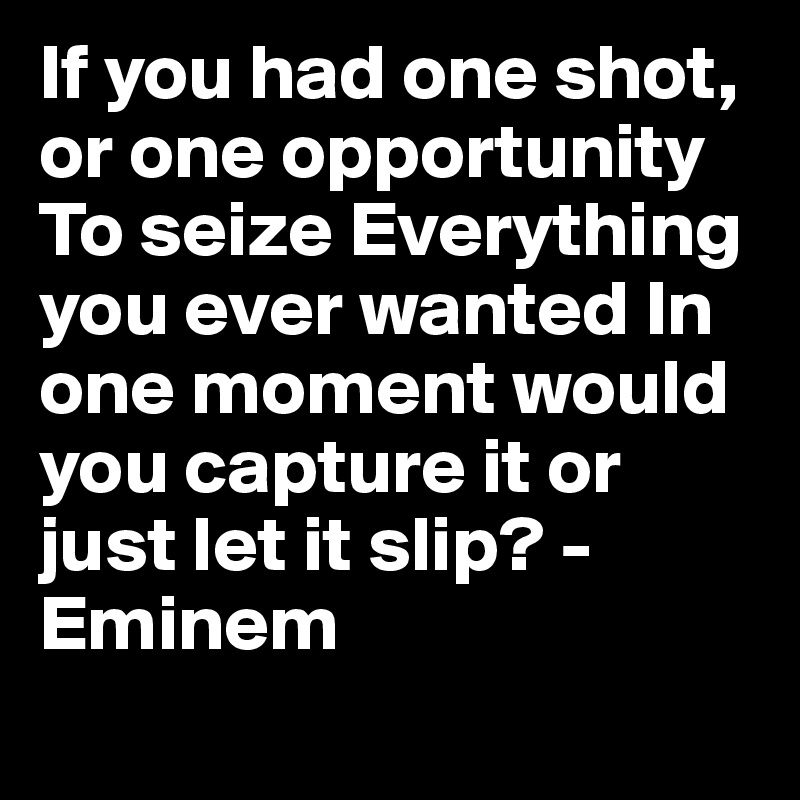If You Had One Shot Or One Opportunity To Seize Everything You Ever Wanted In One Moment Would You Capture It Or Just Let It Slip Eminem Post By Kathiheger On
