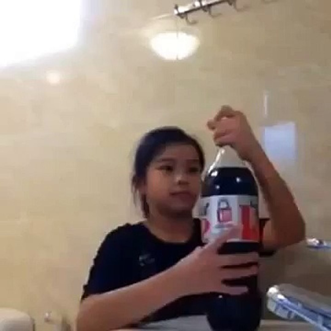 Little Girl Tries The Diet Coke And Mentos Challenge But