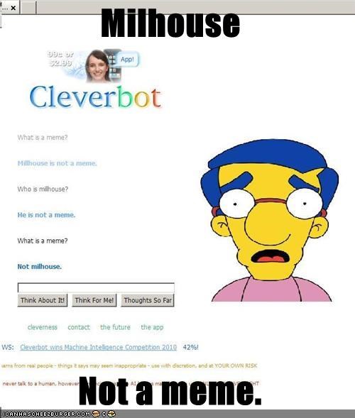 Milhouse is not a meme. We would like to show you a description here but the site won t allow us. The story goes that someone was spamming milhouse memes on the site causing users to start responding with the phrase milhouse is not a meme which ironically became a meme.