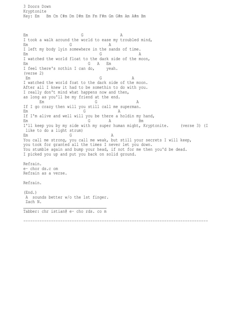 3 Doors Down Kryptonite Chords Txt Superman
