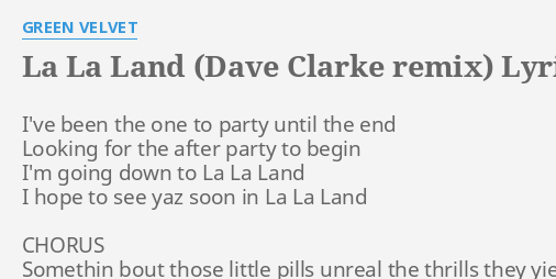 La La Land Dave Clarke Remix Lyrics By Green Velvet I Ve Been