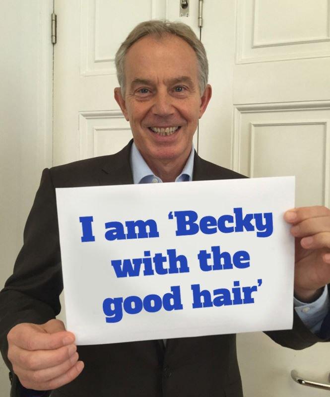 Tony Blair Holding Becky With The Good Hair Sign United