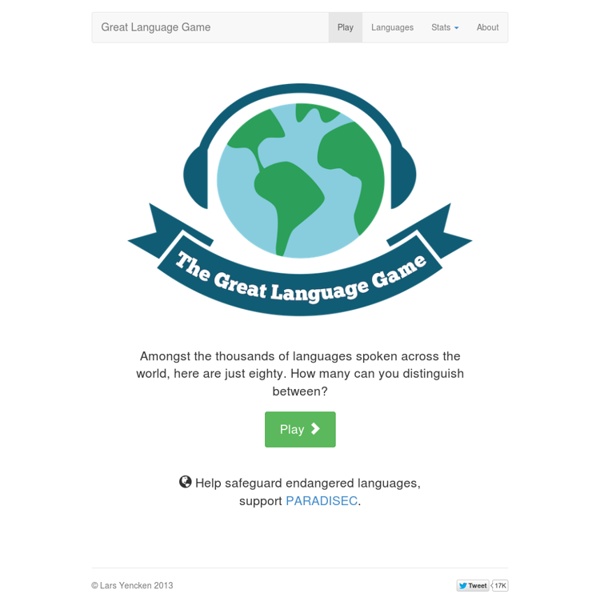 The great language game. The great language game challenges you to distinguish between some eighty or so languages based on their sound alone.