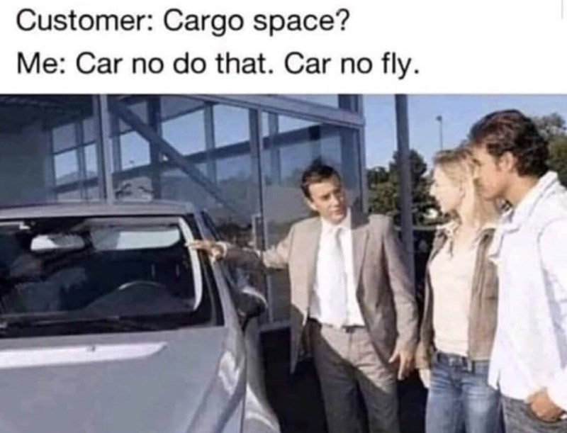 With that in mind here are 25 car memes taken from our 440k likes car memes fb page that were liked commented on and shared by millions. 994 views 2 upvotes 1 comment. Ensuring a career as a used car salesman seriously questionable style moments.