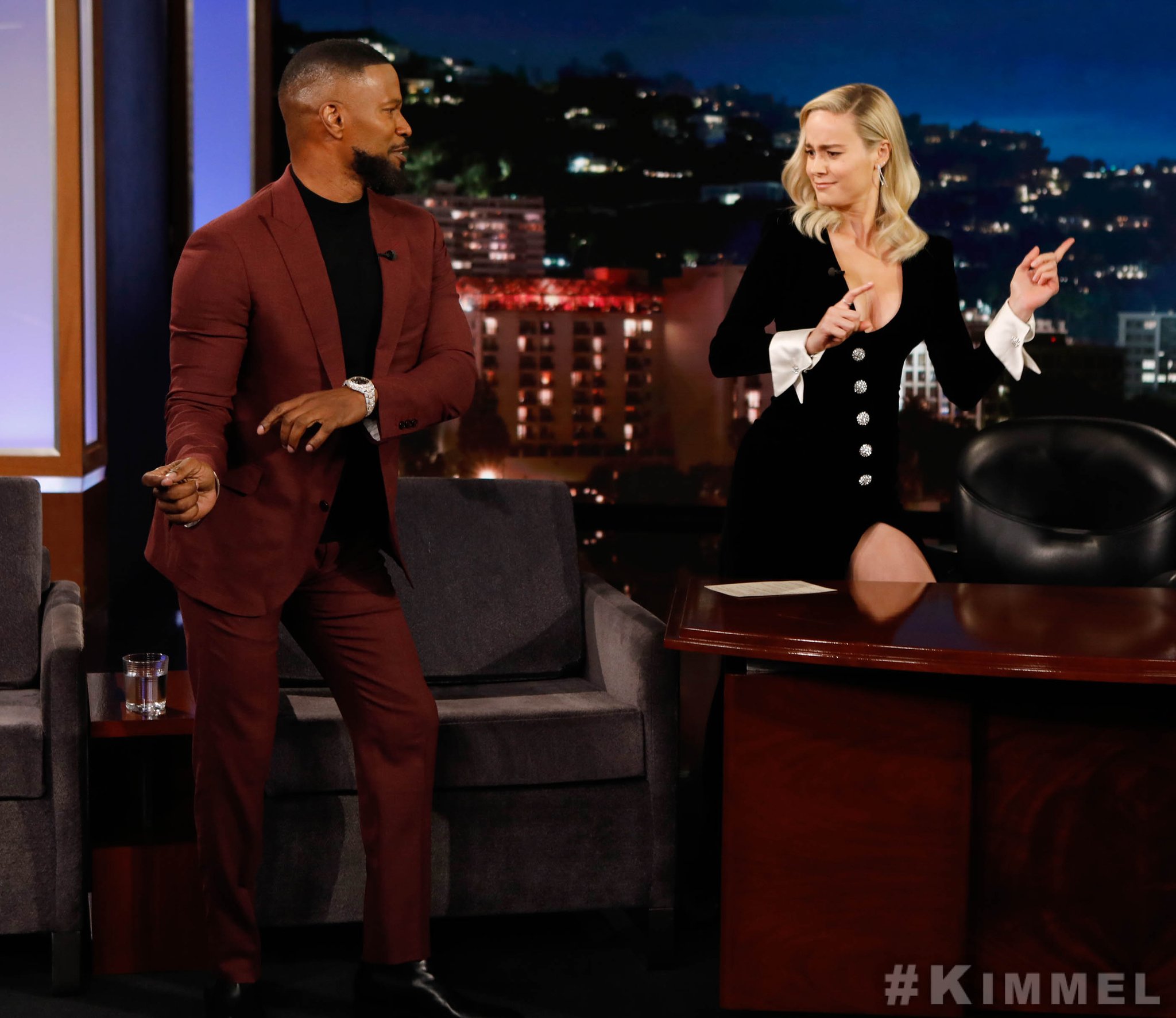 Last night lason took. Guest hosting jimmy kimmel live. Brie larson took the plunge while guest hosting.